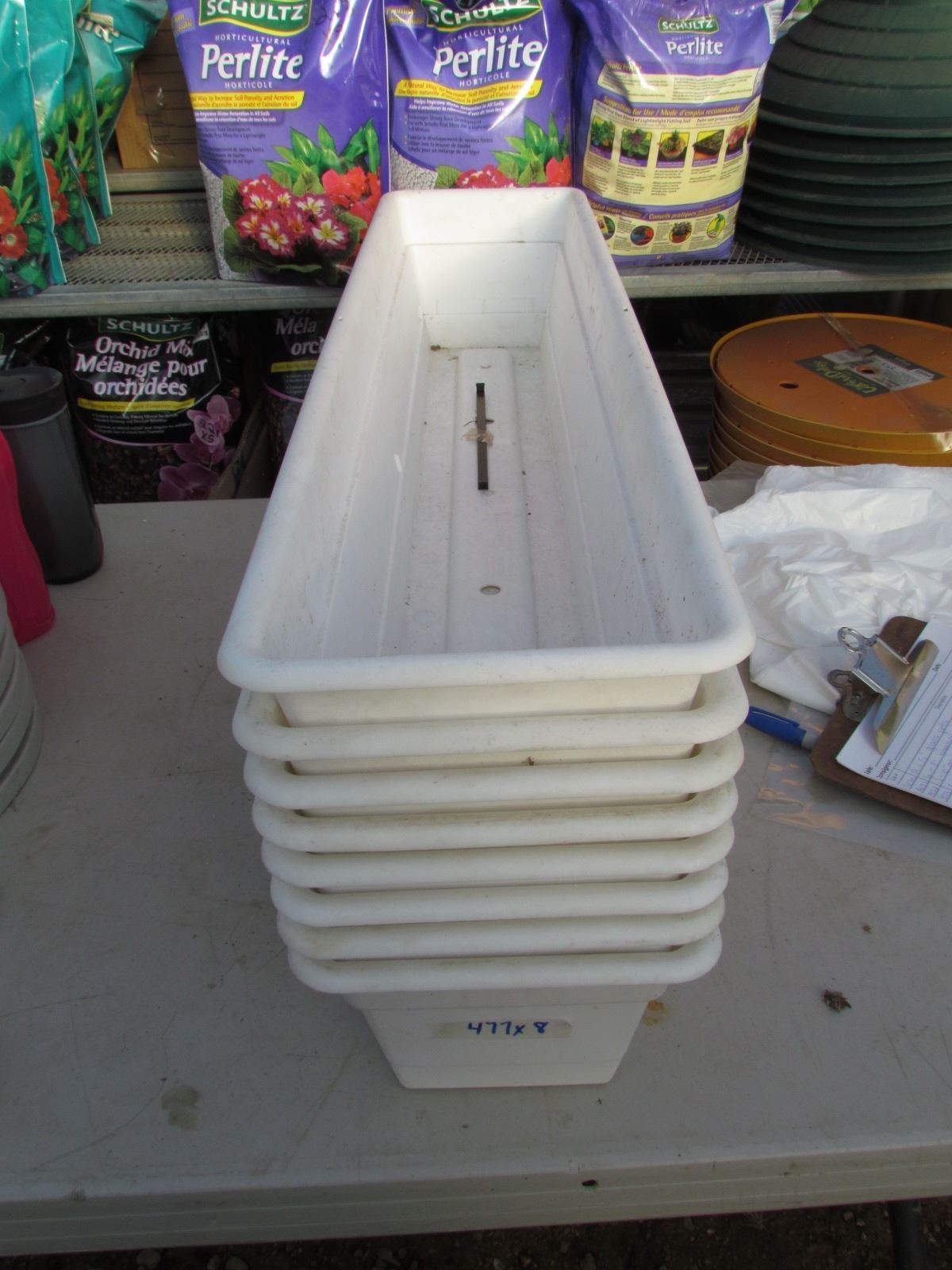 8 DURA-COTTA BOX 30"X7.5" WITH TRAYS, WHITE (8 TIMES BID PRICE)