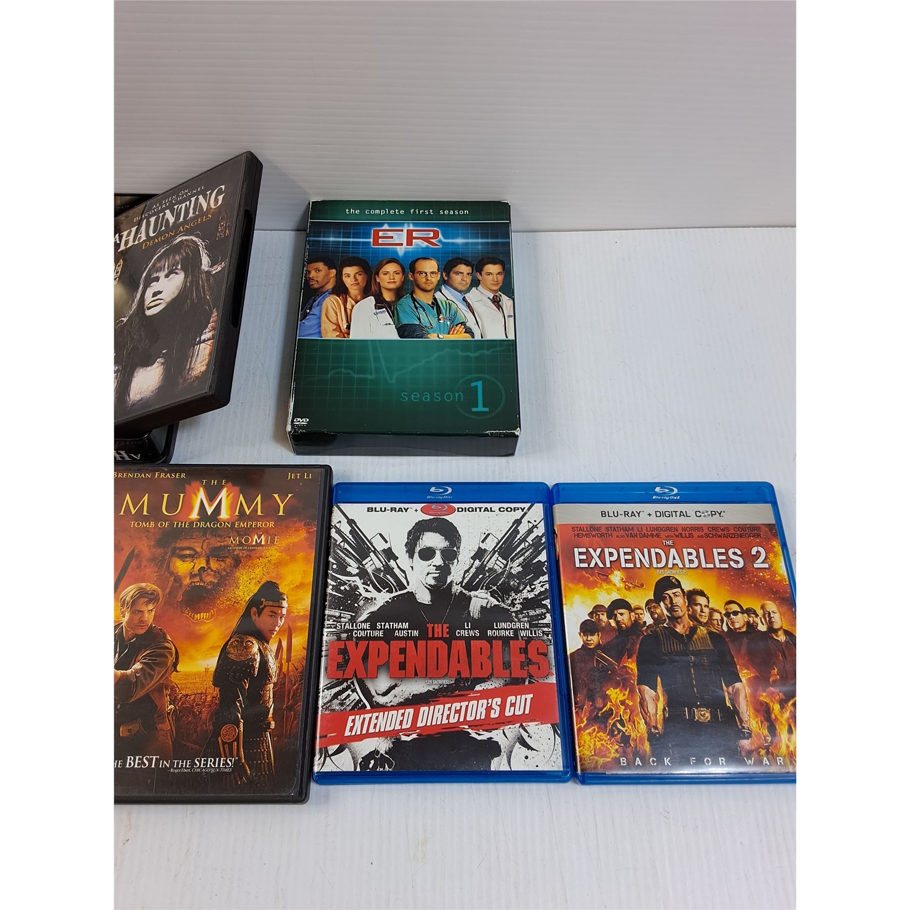 (8) DVDS/Blu-rays: ER, Haunting, Scream, Mummy, Expendables