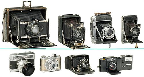8 Different Cameras - Collection Basis 1)"Atom", horizontal format, c. 1909. Ica, Dresden. Size 4,5 x 6 cm, with Tessar 4,5/6,5 cm, with pack cassette. - 2) "Thone", c. 1922. Thowe-Kamera-Werk, Freital. Field camera, size 10 x 15 cm, with Thowe-Doppel-Anastigmat 4,5/165 mm, Compur shutter. - 3) "Plate camera 6 x 9 cm", c. 1910. Contessa-Nettel. With Citonar 6,3/120 mm, Compur shutter. - 4) "Rollette 216", um 1928. Krauss, Stuttgart. Size 5 x 8 cm, with Rollar 6,8/9 cm. - 5) "Solida III", version from 1952. Franka, Bayreuth. Size 6 x 6 cm, Schneider Radionar 2,9/80 mm, Prontor-Shutter. - 6) "Werra 1e", 1965. Carl Zeiss, Jena. With T. 2,8/50 mm, with lens hood and cap. - 7) "Vito C Set", 1980. Voigtländer. With flash VCS 18. - And: 8) "Silver Gelto", c. 1950. Toakoki Optical Works, Japan. Size 3 x 4 cm on film 127, with Grimmel 3,5/5 cm, shutter 1-1/200, with case. - Lot with some rare cameras!<Br>