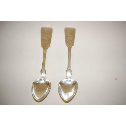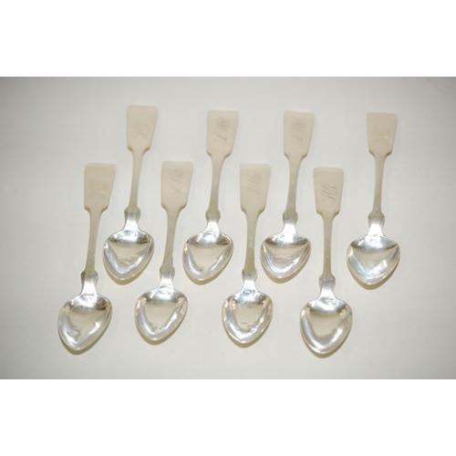 (8) EARLY AMERICAN SILVER TEASPOONS - (3) 6 1/4" WM. W. HANNAH NY SILVER TEASPOONS & (5) 6" CHARLES BALL POUGHKEEPSIE NY SILVER TEASPOONS-ALL MONOGRAMMED (5 TROY OZ.)