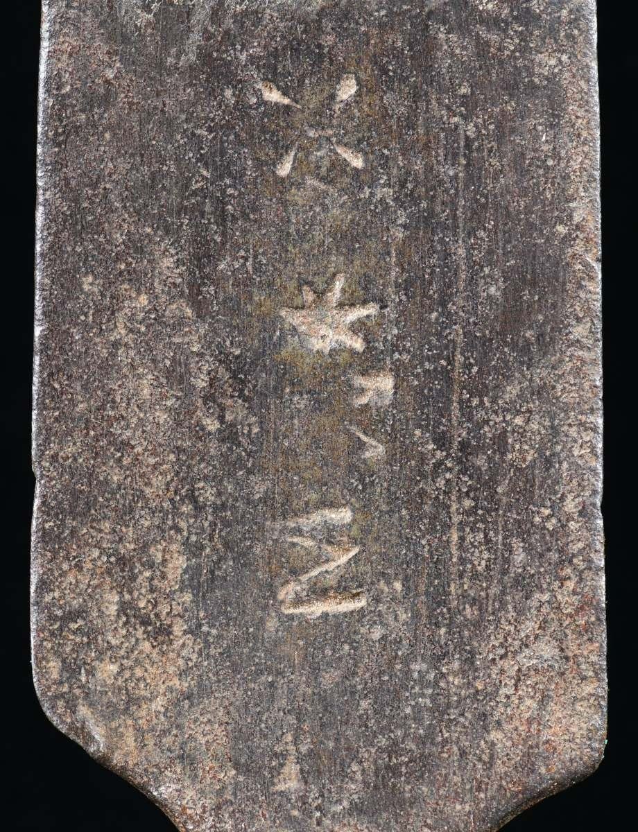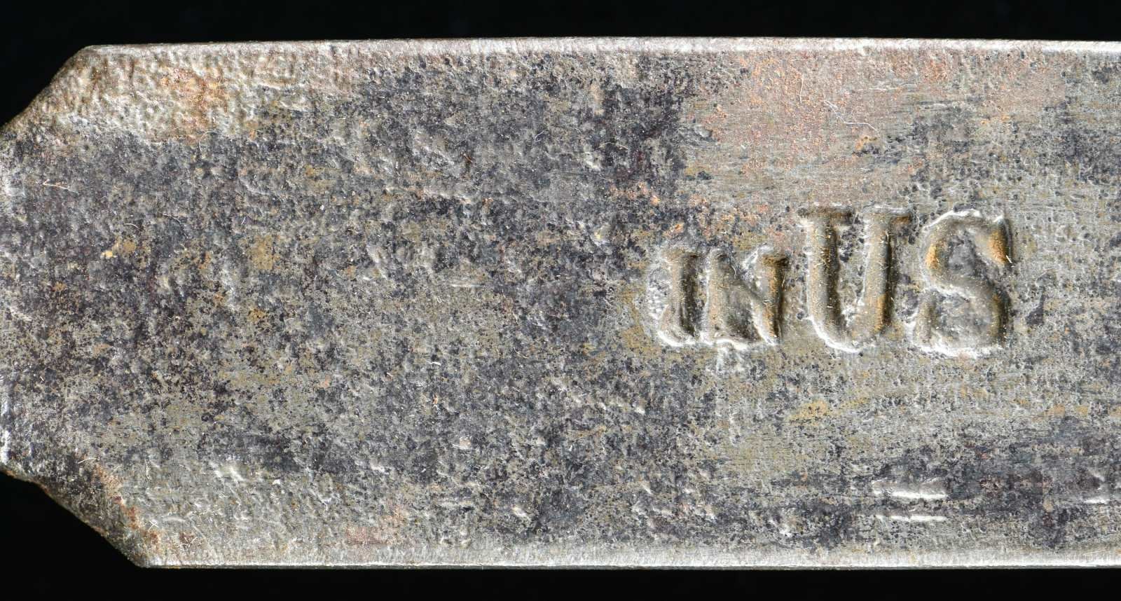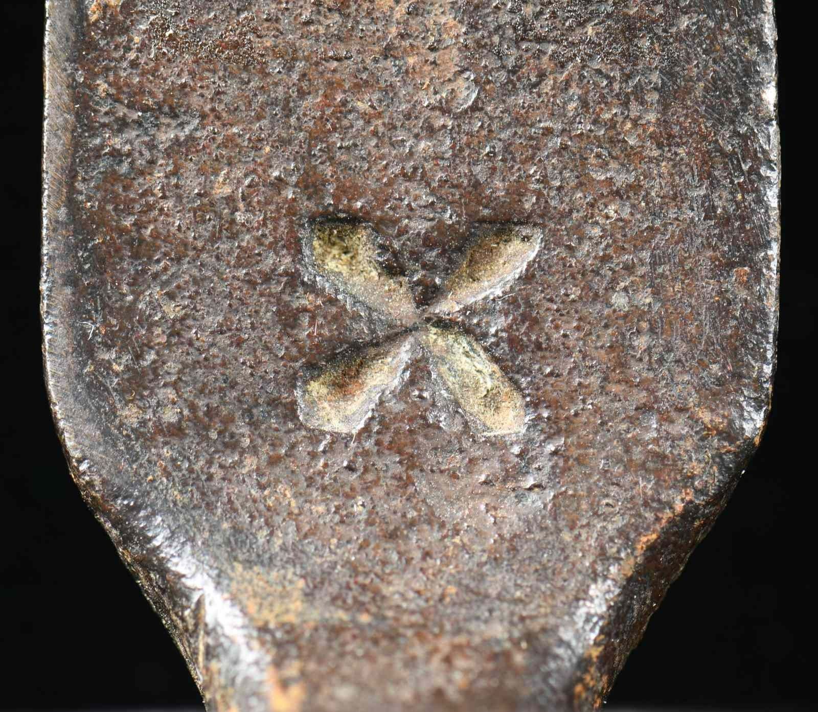 1) US M1808/12 bayonet measuring 17" overall with a 3 5/16" socket and a 12 3/4" blade. The blade is marked with a small "IN" and a large "US". See 4 variation 3 on page 20 of Hardin. CONDITION: blade has a cleaned, dark gray patina with some evidence of pitting and small separation at the mortise. 2) A US M1795-1808 transition bayonet measuring 20 1/8" overall with a 3 1/8" socket and a 16 5/8" blade. The flat of the blade is stamped near the elbow with an inspector's mark in the shape of an 8. The socket is clearly stamped "A" in front of the mortise. CONDITION: bayonet has a worn blued finish that appears to have been added some time in the 20th century. 3) US, late 18th century bayonet possibly by J.J. Henry. Bayonet measures 18" overall with a 2 1/4" socket and a 14 7/8" blade. There is a large, deeply stamped "X" on the flat of the blade near the elbow. No other markings are present. CONDITION: bayonet has a dark overall patina. 4) An American copy of a British land pattern bayonet with an overall length of 19 1/2". The socket measures 2 7/8", and the blade measures 15 3/4". The entire bayonet is unmarked. CONDITION: bayonet has a medium gray patina. 5) US State of Maryland contract bayonet measuring 17 3/8" overall with a 2 5/16" socket and a 14 1/4" blade. The flat of the blade is stamped "M * X". The flat is also stamped with a small "RA" in two places. CONDITION: bayonet has an overall dark patina with some oxidation but little pitting. 6) A US M1816 bayonet measuring 19" overall with a 3" socket and a 15 3/4" blade. The only mark on the bayonet is two dots near the elbow. CONDITION: blade has a light gray overall finish. 7) A French M1777 Charleville bayonet for the AN IX flintlock musket. Bayonet measures 18 5/8" overall with a 2 1/8" socket and a 15 3/8" blade. Blade has several stampings on the flat near the elbow. The socket is also profusely marked with what appears to read "IIIIS I.C.N.95". The bayonet is housed in a nicely incised leather scabbard, likely of American manufacture. CONDITION: bayonet has a lightly cleaned, dark finish with universal light pitting. The scabbard generally shows light wear and is quite solid, but the tip is open. 8) US M1816 bayonet measuring 19 1/4" overall with a 3" socket and a 16" blade. The flat of the blade near the elbow is stamped "US / WR". The bayonet is housed in a brass trimmed, black leather scabbard that appears to be for an early British Enfield bayonet. CONDITION: bayonet has a light gray, mottled patina. Scabbard shows minor flexing. Frog has a break at the belt loop. PROVENANCE: From the Collection of James B. Taylor. (02-19876-2/BF). $1,700-2,200.