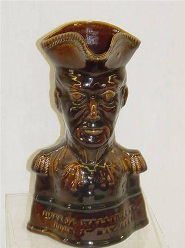 8" ENGLISH BROWN FLINT GLAZED DUKE OF WELLINGTON TOBY PITCHER - UNDER GLAZE CHIP ON SPOUT;
