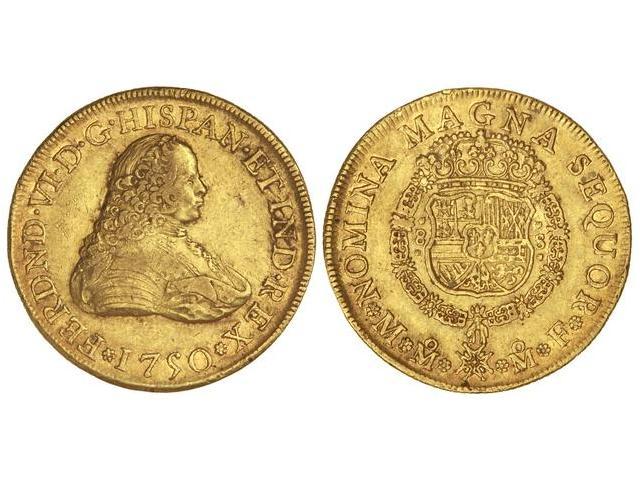 8 Escudos. - 1750. - MÉXICO. - M.F. - (Leves golpecitos en gráfila del reverso). MUY ESCASA. Cal-37; XC-600. MBC+. - -