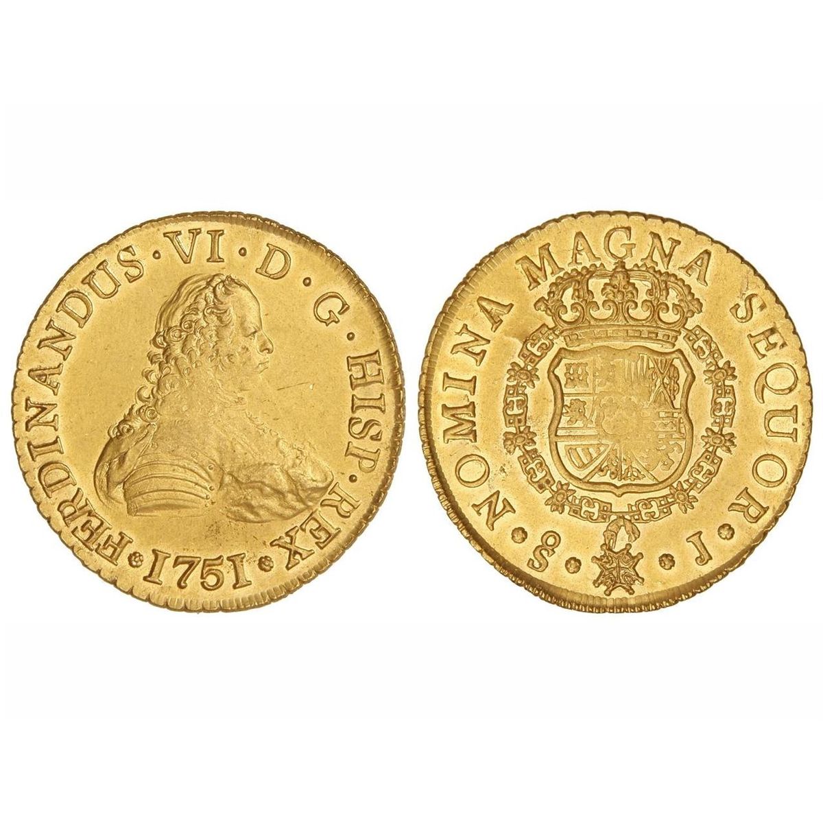 8 Escudos. - 1751. - SANTIAGO. - J. - Brillo original. (Acuñación algo floja en parte del reverso. Levísimas rayitas). Cal-72; XC-644. SC. - -