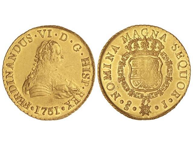 8 Escudos. 1751. SANTIAGO. J. Brillo original. Acuñación algo floja en partes. (Leves hojitas al dorso). Cal-72; XC-644. S/C.