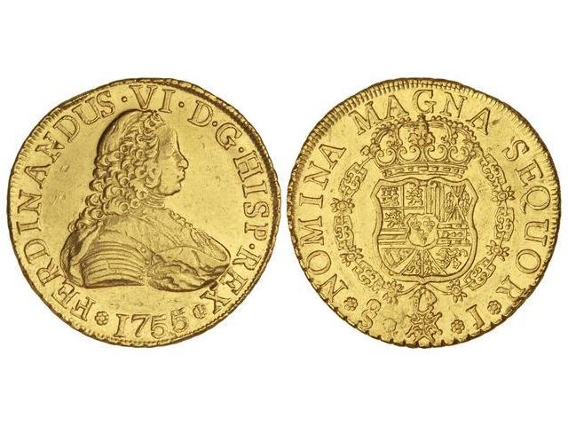 8 Escudos. - 1755. - SANTIAGO. - J. - (Rayitas). Cal-77; XC-649. MBC+. - -