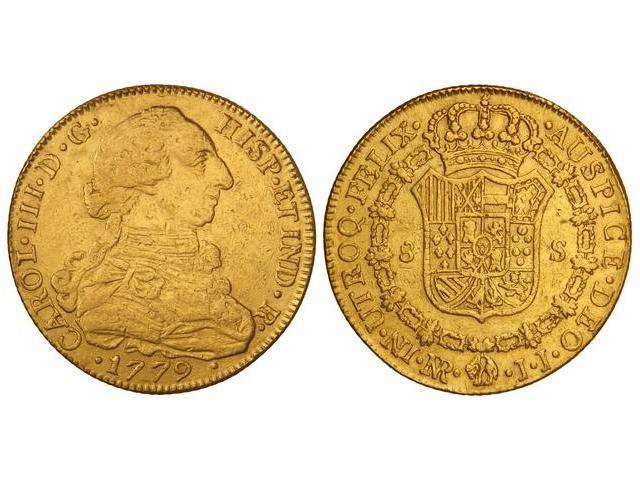 8 Escudos. 1779. NUEVO REINO. J.J. (Ha estado en aro). Cal-185; XC-878. MBC.