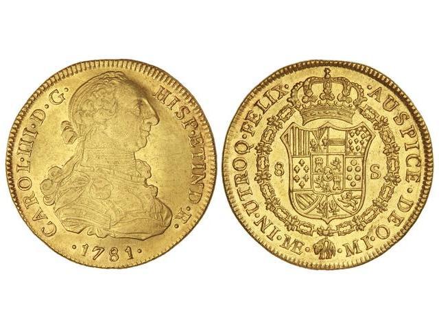 8 Escudos. - 1781. - LIMA. - M.I. - Restos de brillo original. BONITA PIEZA. Cal-38; XC-706. EBC. - -