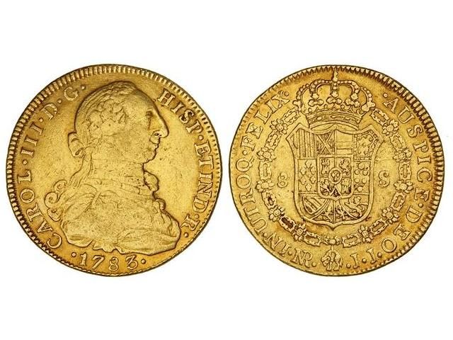 8 Escudos. 1783. NUEVO REINO. J.J. Cal-192; XC-886. MBC-/MBC.