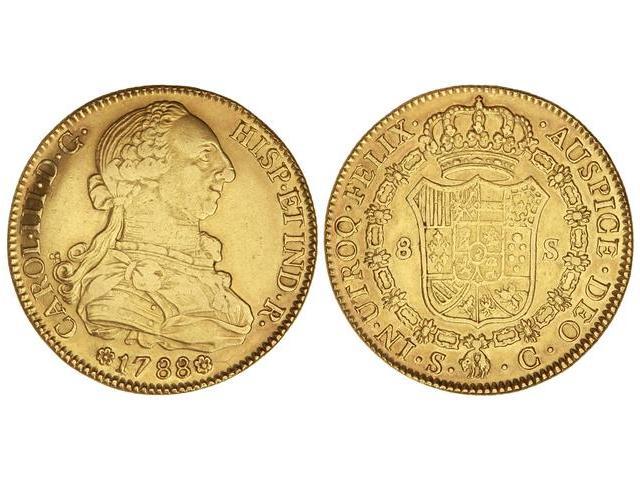 8 Escudos. - 1788. - SEVILLA. - C. - (Acuñación algo floja en centro). ESCASO. Cal-263; XC-969. MBC+. - -