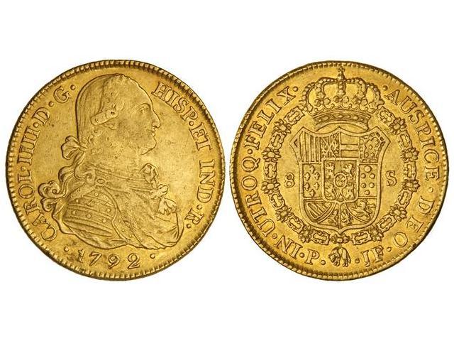 8 Escudos. 1792. POPAYÁN. J.F. Cal-70; XC-1052. MBC+.