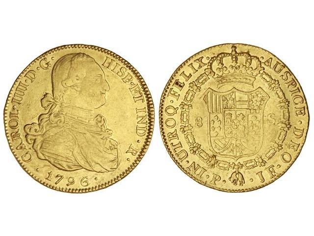 8 Escudos. - 1796. - POPAYÁN. - J.F. - Cal-75; XC-1059. MBC. - -
