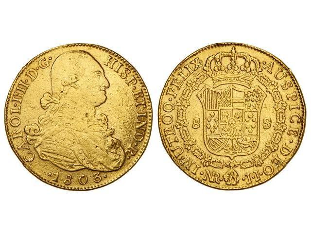 8 Escudos. 1803. NUEVO REINO. J.J. (Colgada). XC-1141. MBC-.