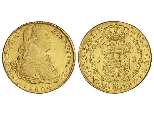 8 Escudos. - 1804. - LIMA. - J.P. - (Golpecitos en canto). Cal-24; XC-1002. MBC+. - -
