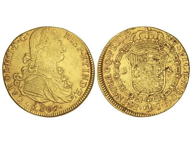 8 Escudos. 1807. LIMA. J.P. (Rayitas en anverso. Golpecitos y hojitas en reverso. Cal-28. MBC+.