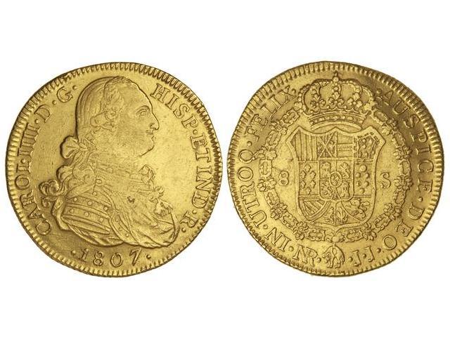 8 Escudos. - 1807. - NUEVO REINO. - J.J. - (Rayitas y hojita en anverso). Cal-143; XC-1147. MBC. - -