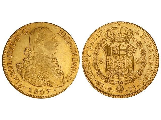 8 Escudos. 1807. POTOSÍ. P.J. Restos de brillo original. (Leve incisión en la parte inferior). Cal-114. EBC-/EBC.