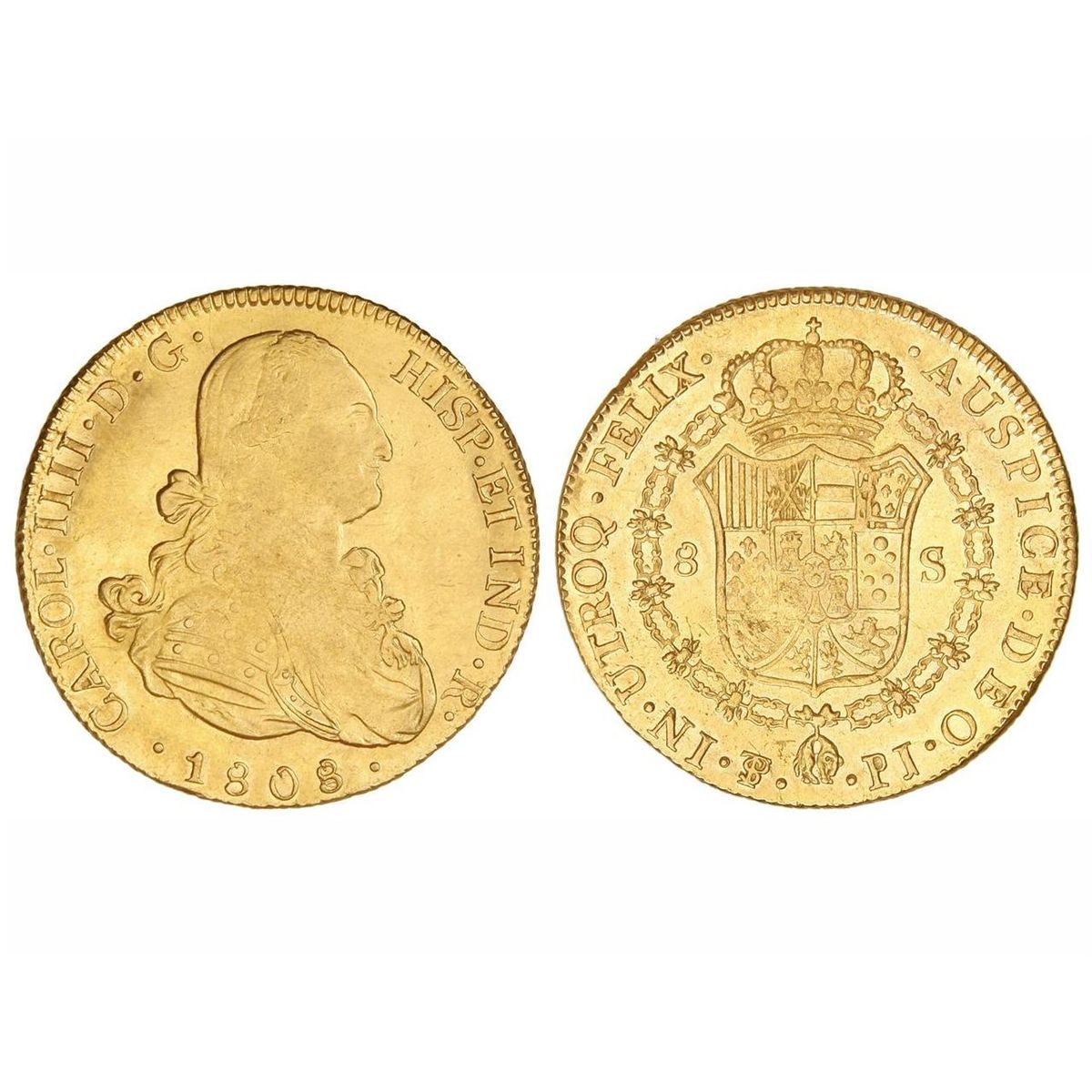 8 Escudos. - 1808. - POTOSÍ. - P.J. - Restos de brillo original. (Acuñación algo floja en reverso. Leves rayitas). Cal-115; XC-1108. EBC/EBC+. - -