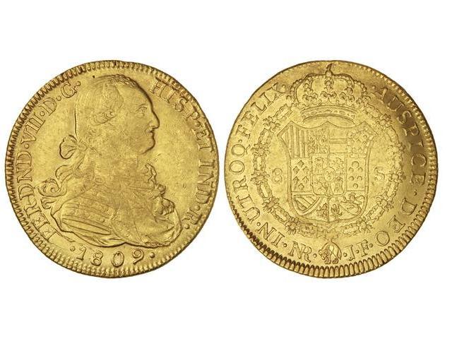 8 Escudos. - 1809. - NUEVO REINO. - J.F. - Busto de Carlos IV. (Rayas en anverso). Cal-94; XC-1313. EBC-. - -