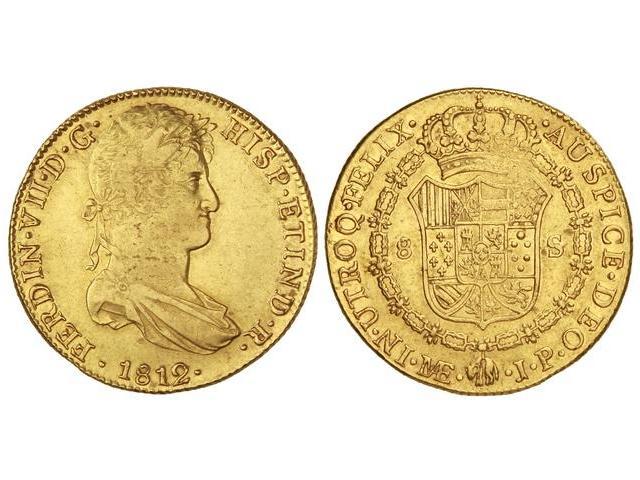 8 Escudos. - 1812. - LIMA. - J.P. - Busto grande. (Pequeñas hojitas). MUY ESCASA. Cal-17; XC-1216. MBC+/EBC-. - -