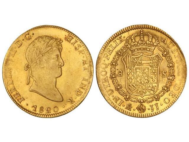 8 Escudos. 1820. MÉXICO. J.J. Restos de brillo original. Acuñación algo floja. Cal-61. EBC.