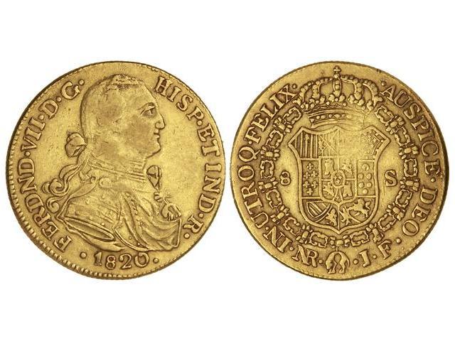 8 Escudos. - 1820. - NUEVO REINO. - J.F. - Busto de CArlos IV. ESCASA. Cal-111. MBC-. - -