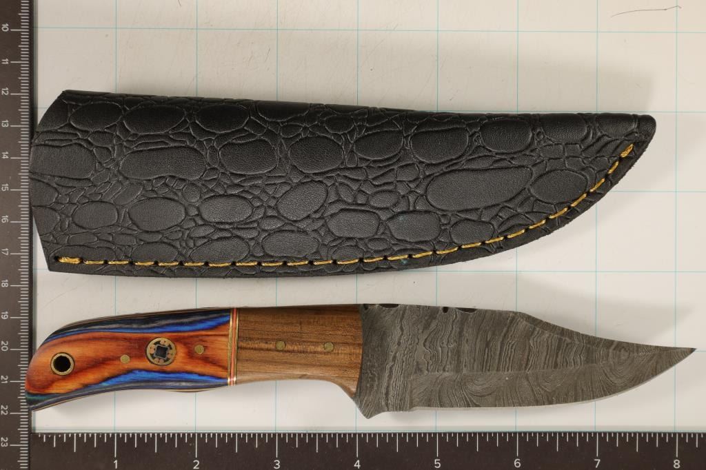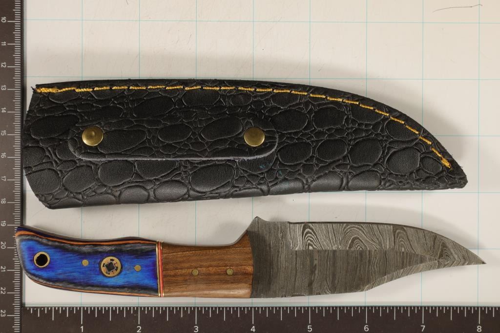 SHEATH. THIS KNIFE IS MADE WITH HARDENED STEEL THAT HOLD A SHARP EDGE LONGER THAN A TRADITION STEEL BLADE. PERFECT FOR HUNTING.