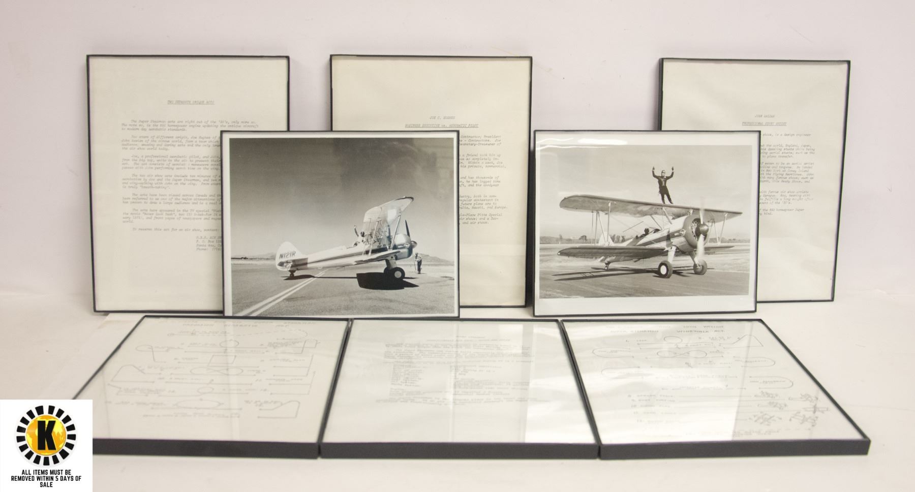 8 FRAMED PHOTO'S & DOCUMENTS OF STUNT AIRPLANE