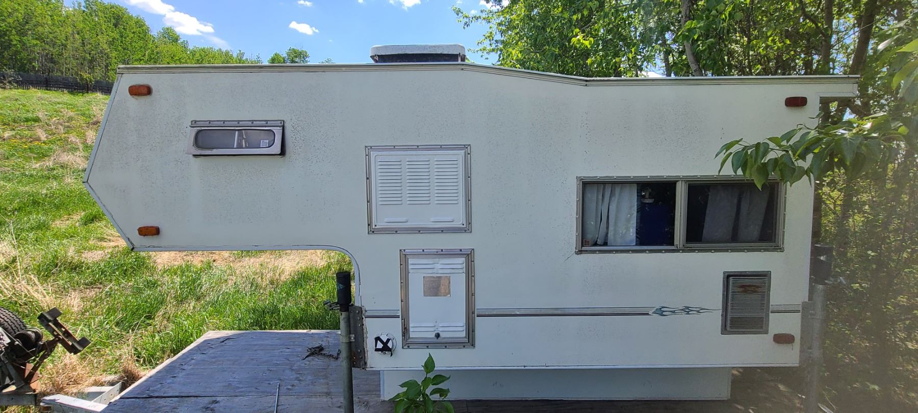 8 FT CAMPER C/W 5 JACKS, PROPANE STOVE, FRIDGE, HEATER SLEEPS 4