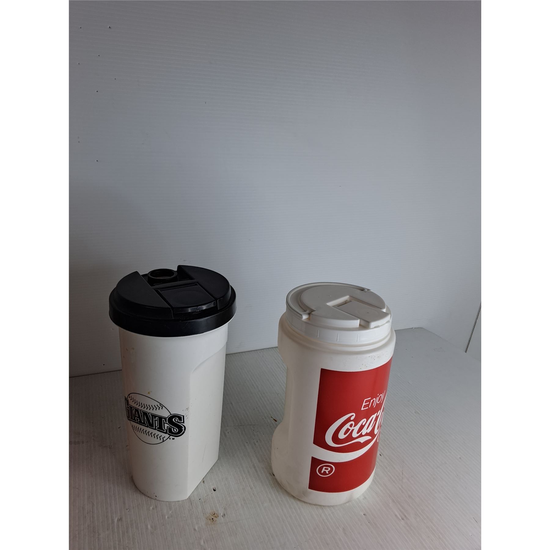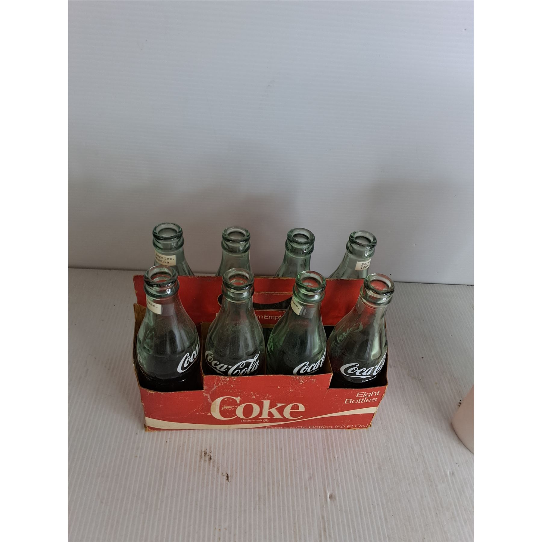 (8) Glass Coca Cola Bottles, (2) Mega Jugs