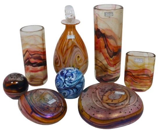 Four vessels, four paperweights. Gozo Glass is a small family-run business from the Island of Gozo, Malta, devoted to making quality studio glass using traditional glass making techniques. The glass is made from high quality raw material brought from Venice, Italy as used by top world glass-makers.