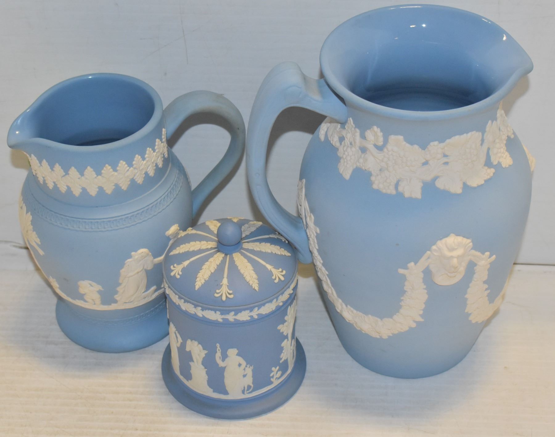6 INCH BLUE AND WHITE PITCHER WEDGEWOOD JAR