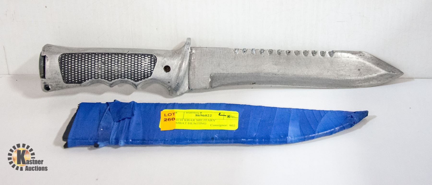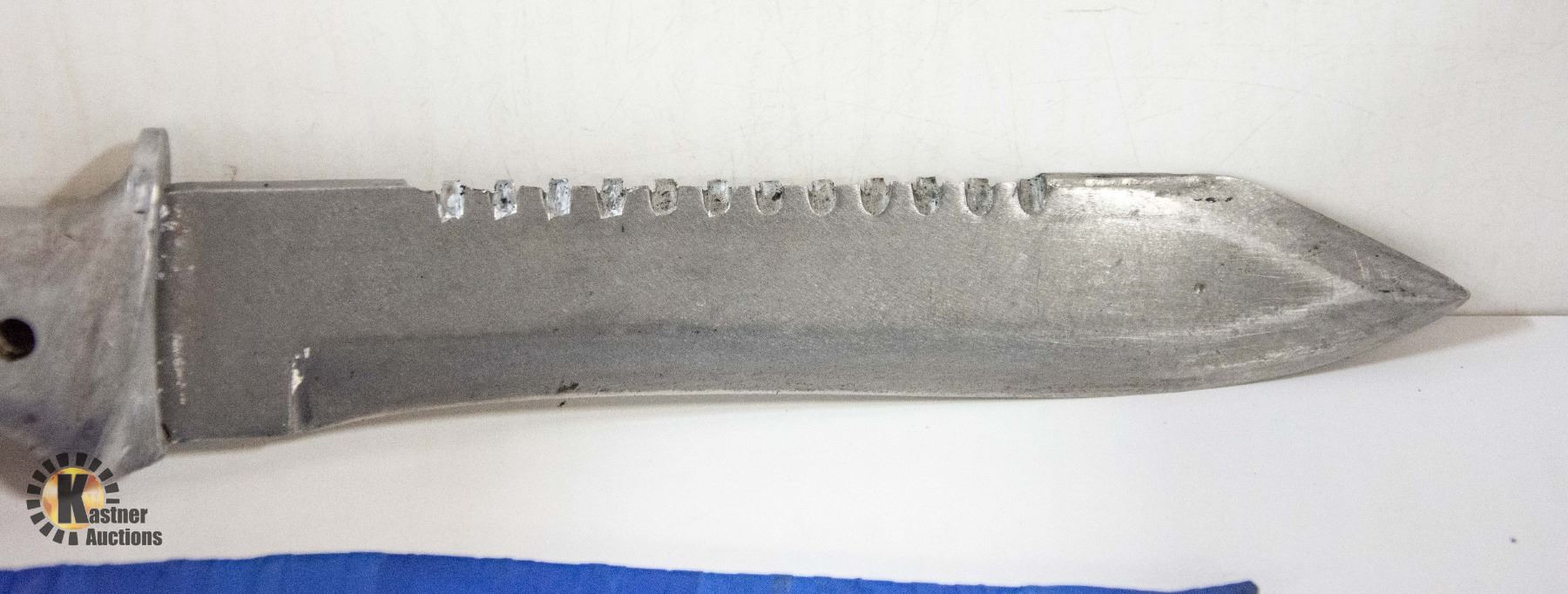 SURVIVAL KNIFE - ALUMINUM HANDLE WITH CROSS-HATCH GRIP AND SCREW BASE STORAGE WITH HARD SHEATH - 13 INCH OVERALL LENGTH **ALL ITEMS MUST BE REMOVED BY 5PM SATURDAY, AUGUST 5TH 2023. ALL REMAINING ITEMS WILL BE SUBJECT TO A $6.00 PER DAY STORAGE CHARGE. ANY ITEMS REMAINING AFTER MONDAY, AUGUST 21ST, 2023 WILL BE CONSIDERED FORFEITED. NO REFUNDS WILL BE ISSUED FOR FORFEITED ITEMS. TO SCHEDULE A PICK UP APPOINTMENT CLICK HERE