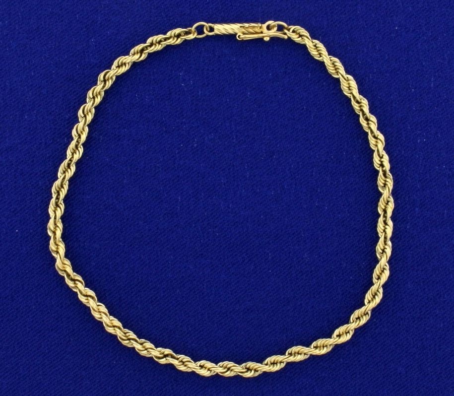 In 14k yellow gold, 8" long and 3mm wide with safety clasp. 6.0g.