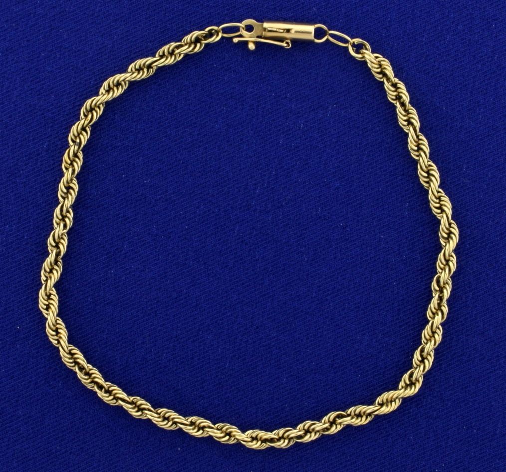 In 14k yellow gold, 8" long and 3mm wide with safety clasp. 6.2g.
