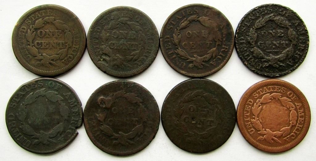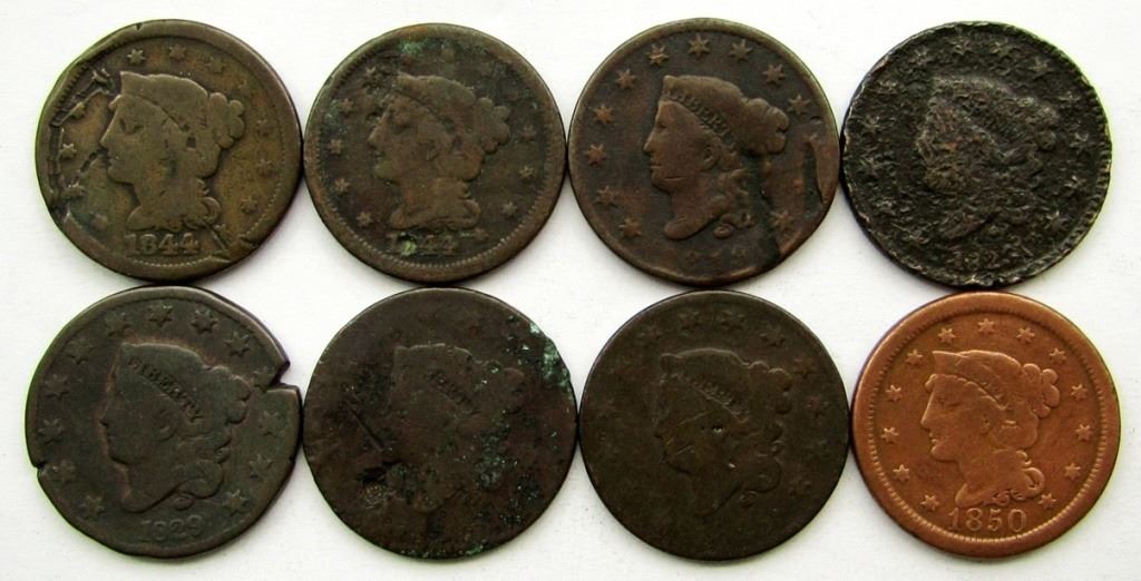 8 - LARGE CENTS - DAMAGED, HOLED, POROSITY