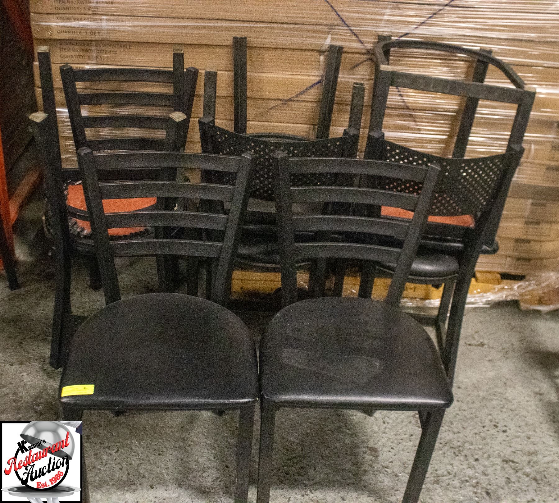 8 LEATHERETT DINING CHAIRS WITH METAL BACK