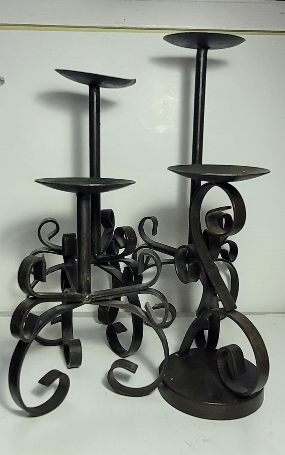 8) LOT OF 4 WRAUGHT IRON CANDLE HOLDERS, IN
