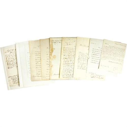 <B>Group of Eight Letters by Members of James Monroe's Administration.</B></I> Includes: <B>John Randolph of Roanoke</B></I> (ALS); <B>Stephen Pleasanton</B></I> (ALS, Dec. 2, 1818, regarding a payment to a Seneca chief); <B>James Brown</B></I> (ALS); <B>John Rodgers</B></I> (ALS, mounted); <B>John W. Taylor</B></I> (ALS); <B>William Wirt</B></I> (ALS); <B>George Graham</B></I> (ALS); and <B>Louis McLean</B></I> (ALS, mounted). Total of eight letters, all in near fine condition. <I>From the collection of Henry E. Luhrs.</B></I><BR><BR><b>Shipping:</b> Miscellaneous Collectibles, Smal (<a target="_blank" href="http://www.heritageauctions.com/common/shipping.php">view shipping information</a>)
