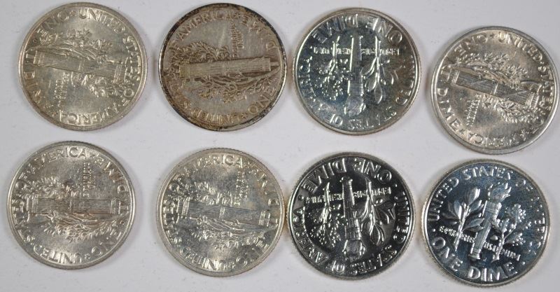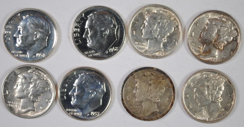 (8) MISC DIMES (1924-S, 1937, 1939-D, 1940, 1945-D, 1957 PR, 1958 PR, 1962 PR)