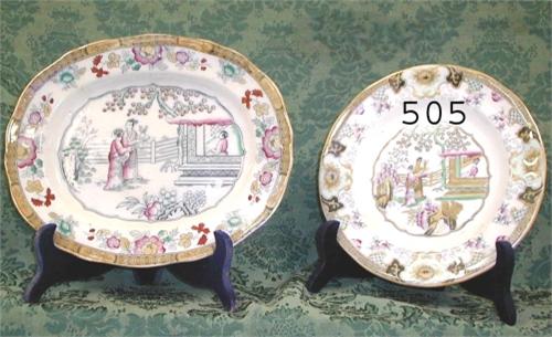 8 ½” Maastricht “Canton” plate and 10 ¾” platter with crows foot