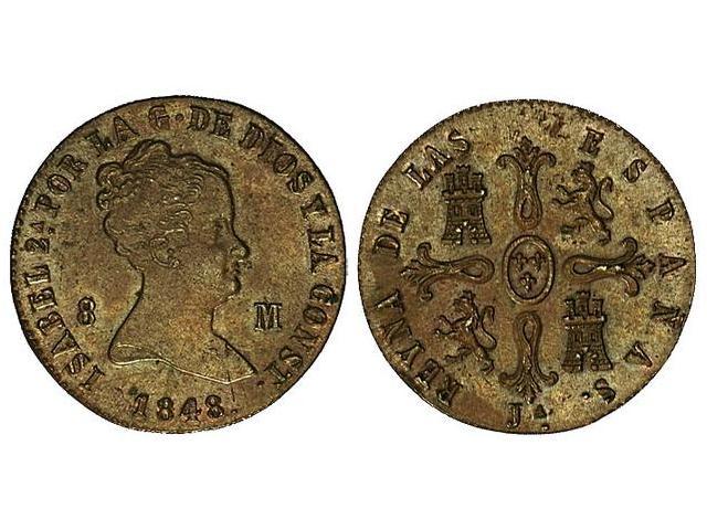 8 Maravedís. 1848. JUBIA. Bonita pátina. CCT-476. EBC+.