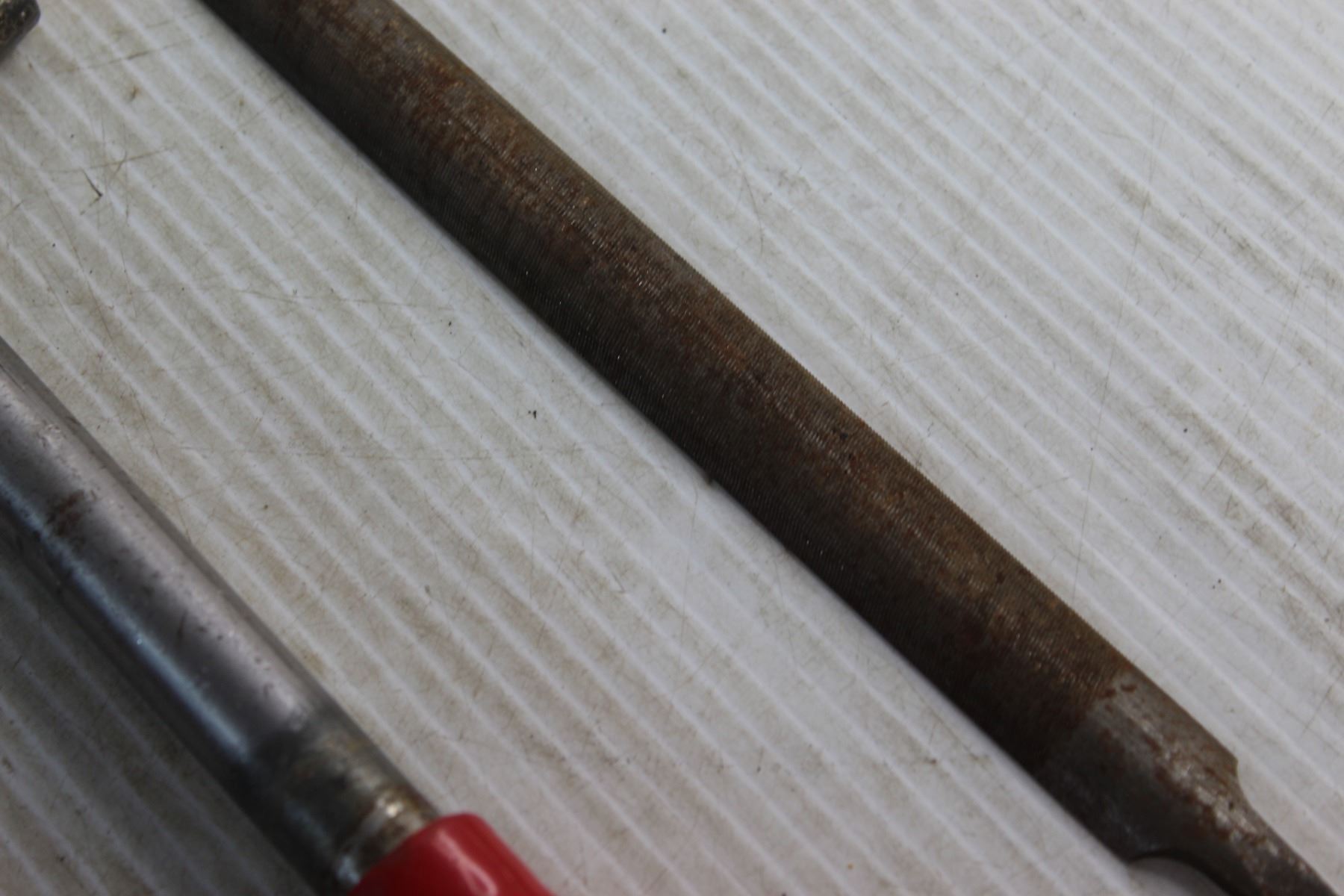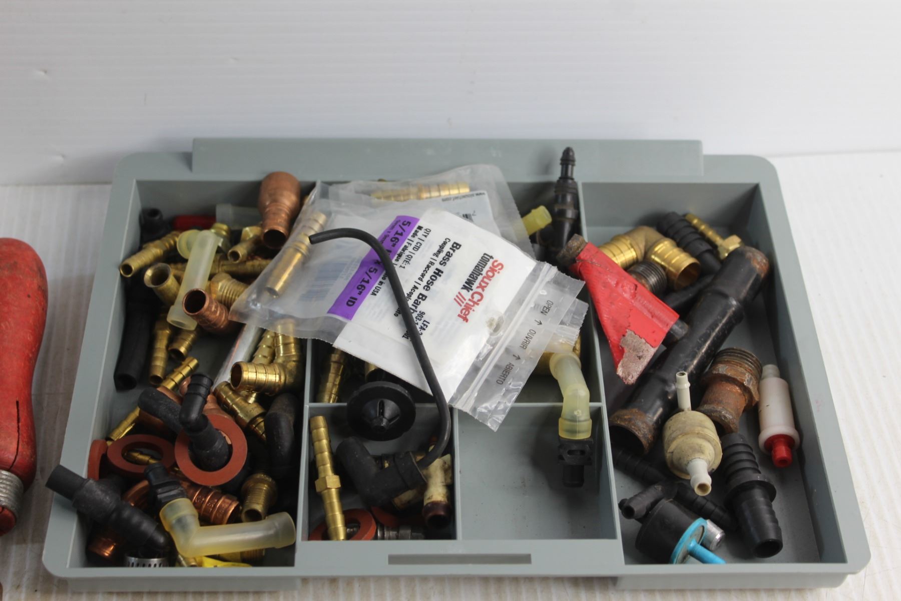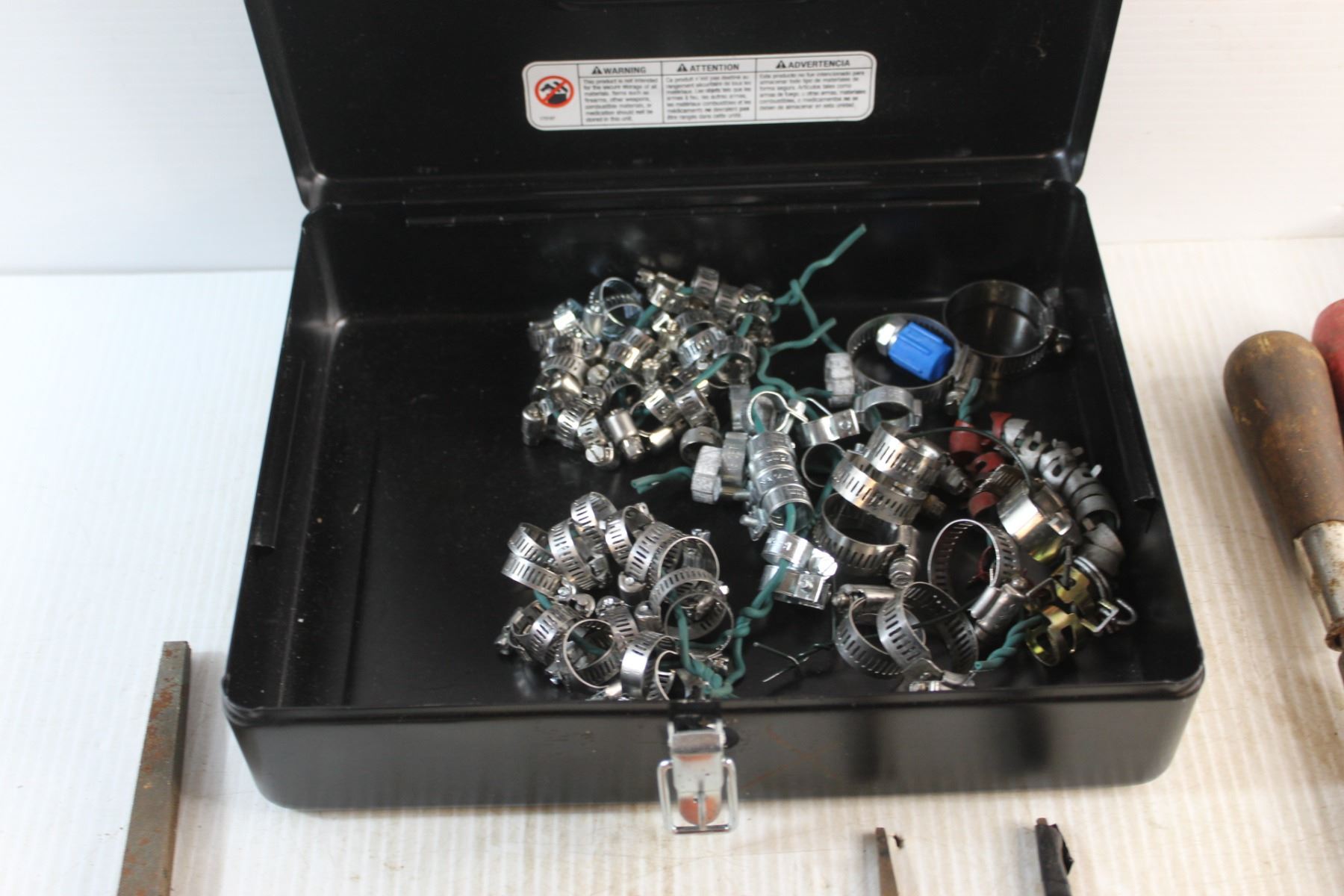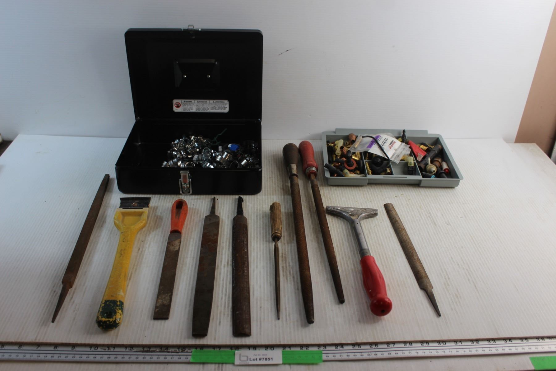 (8) Metal Files, (2) Scrapers and Hose Clamps, Hose Barbs & Small Parts Box