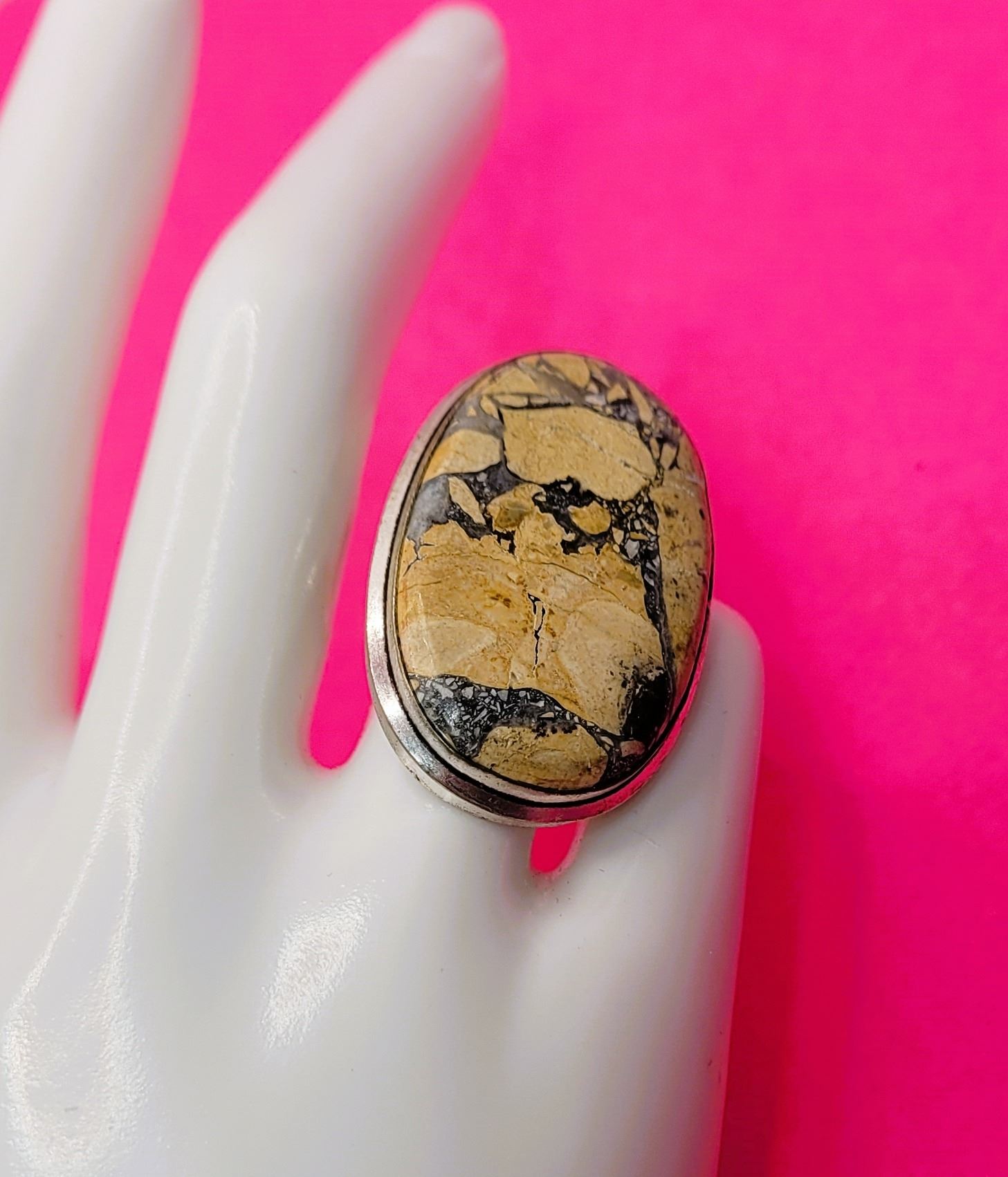 8) NATURAL OVAL JASPER STATEMENT RING, SIZE 7.