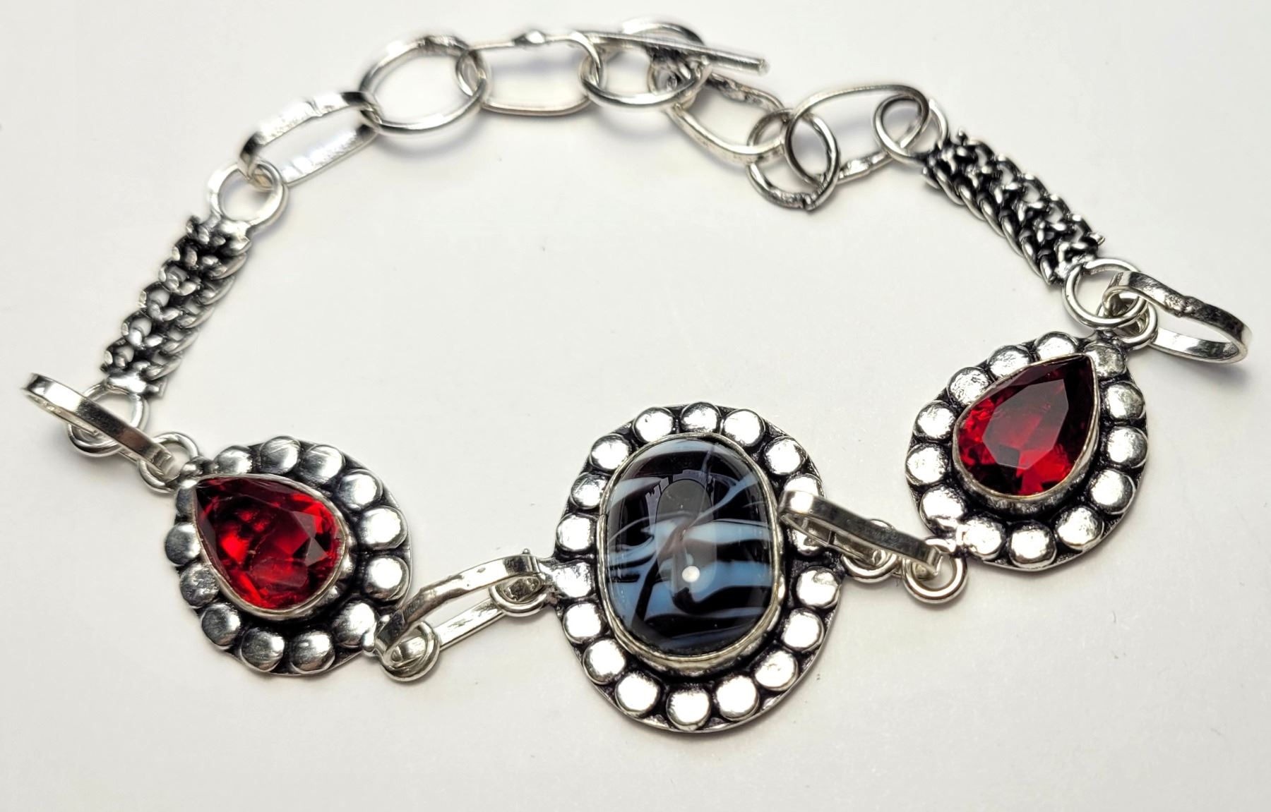 BRACELET WITH ADJUSTABLE TOGGLE CLASP, SETTING STAMPED 925. JEWELLERY