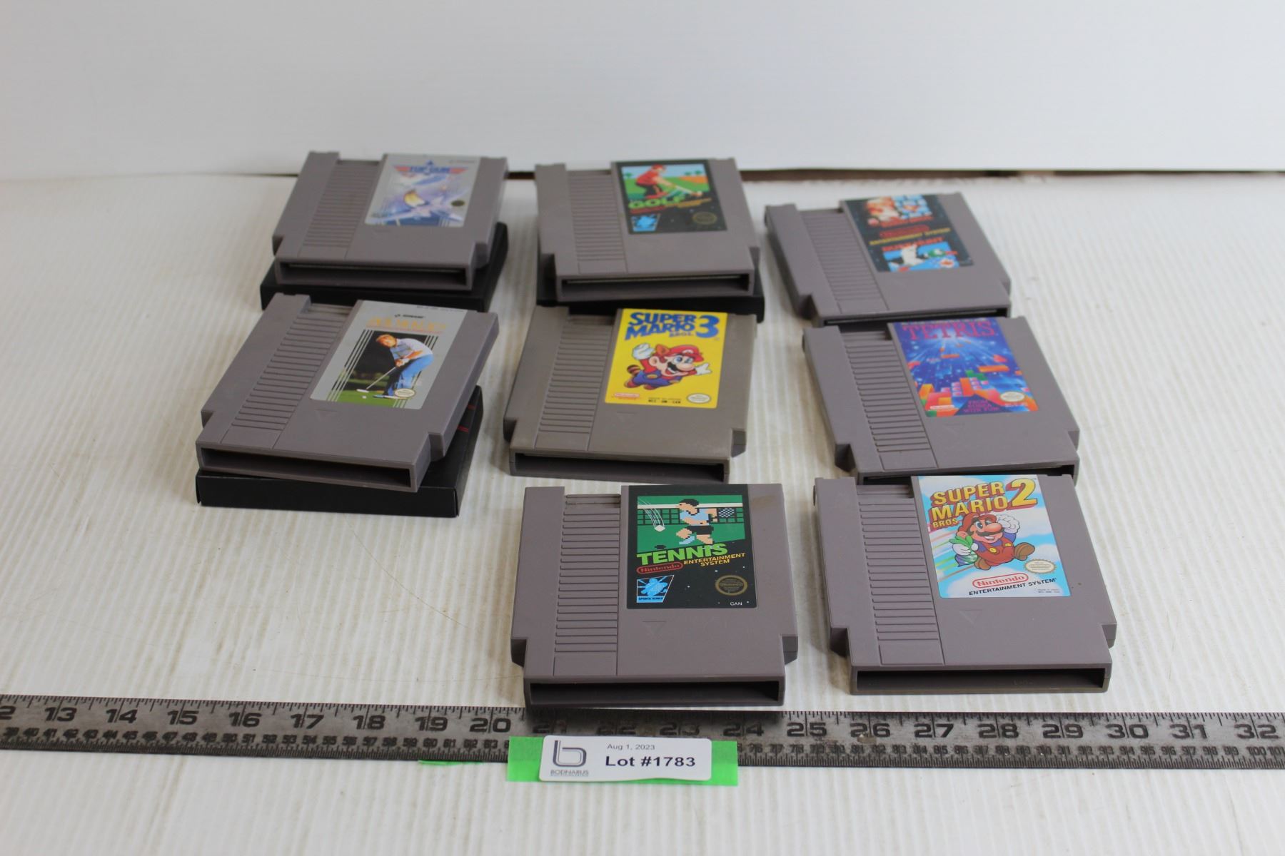 (8) NES Cartridges (Super Mario Bros. 2 and 3, Super Mario Bros. & Duck Hunt, Top Gun) (3 Have Cases) (Not Tested)