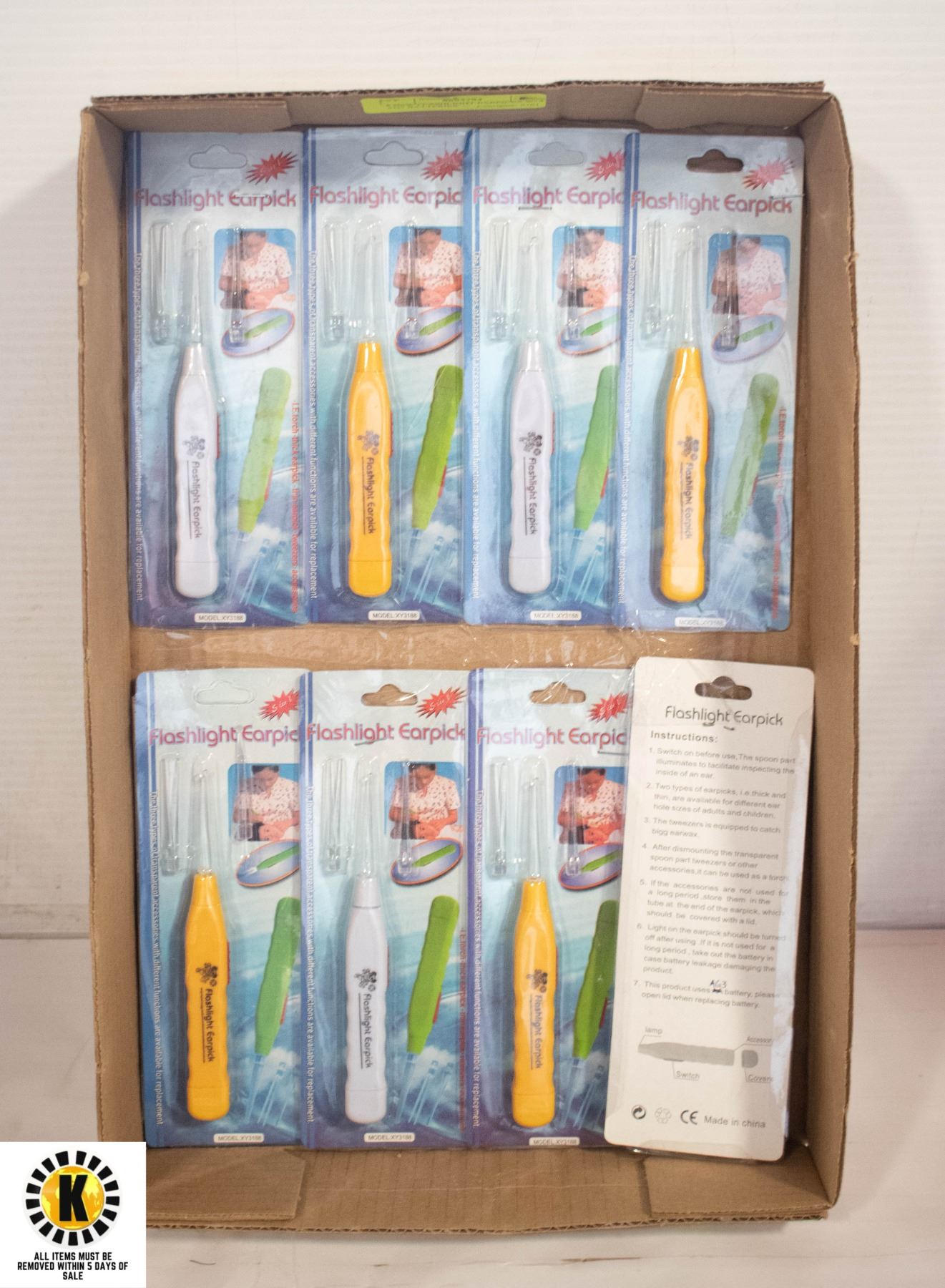 8 NEW FLASHLIGHT EARPICKS W/ 3 ACCESSORIES & 3 AG3 BATTERIES IN EACH
