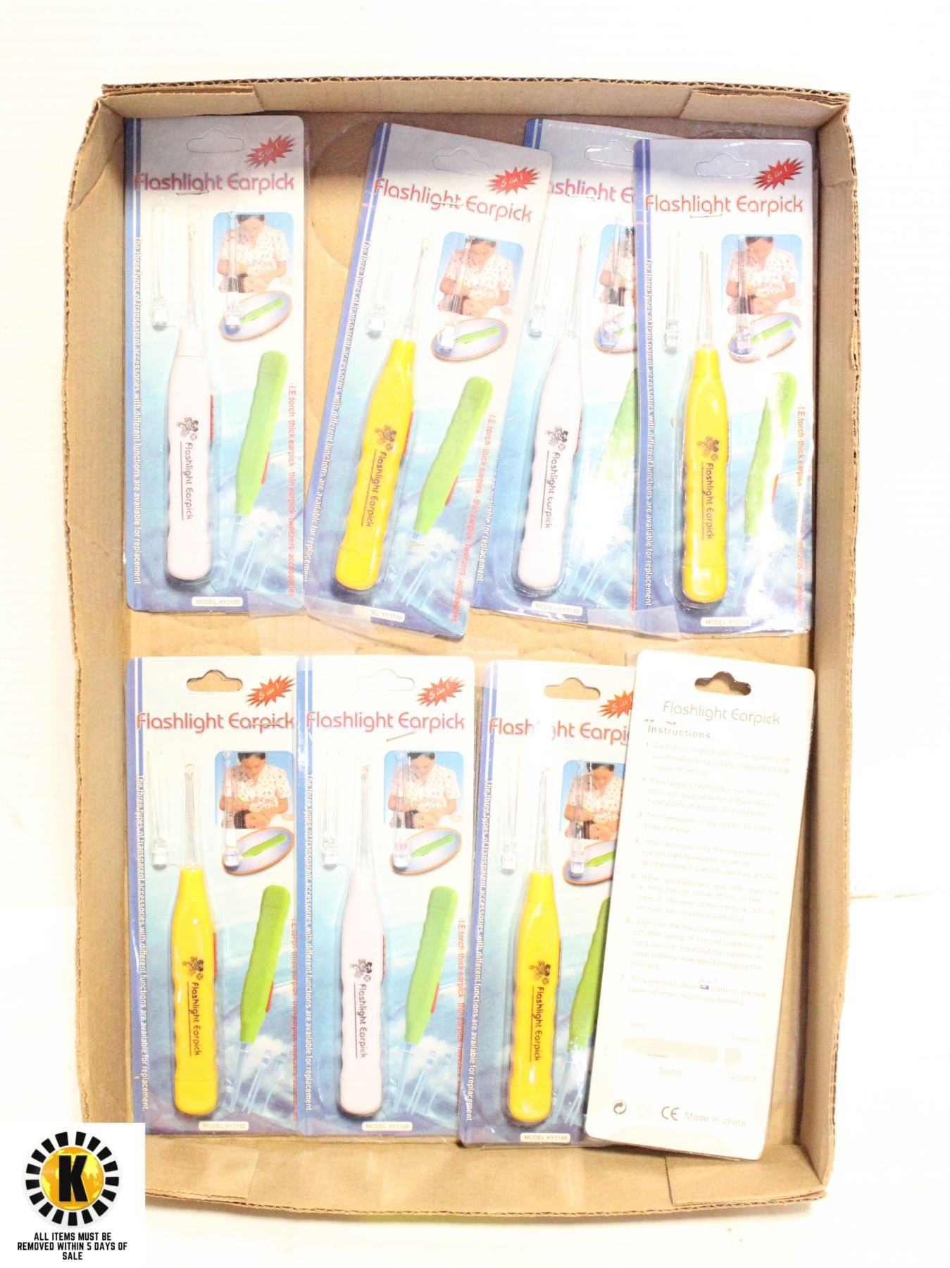 8 NEW FLASHLIGHT EARPICKS W/ 3 ACCESSORIES & 3 AG3 BATTERIES IN EACH
