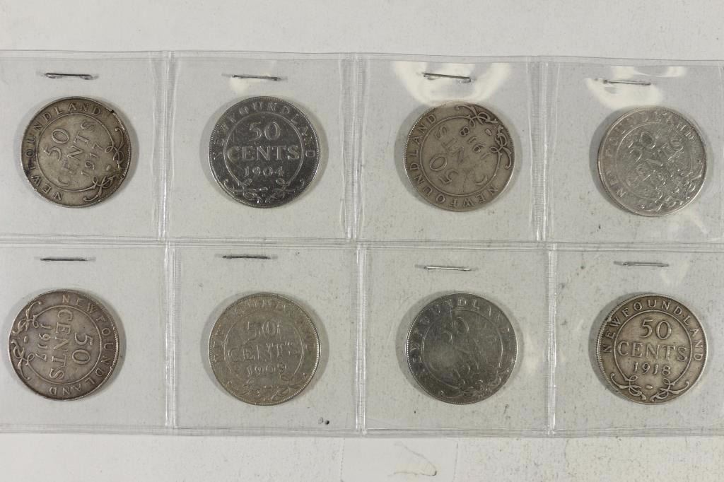8 NEWFOUNDLAND SILVER 50 CENTS 1904,09,1911,