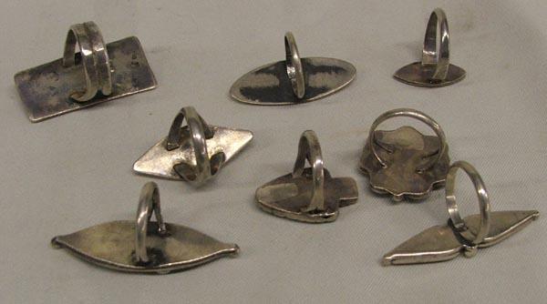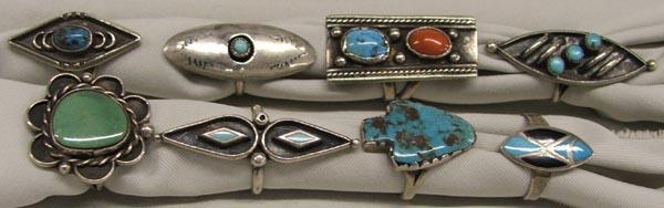 8 Navajo Silver Turquoise Coral Rings, largest ring Size 8 1/2. SHI $20.